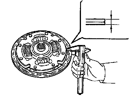 Using vernier calipers, measure the damper disc thickness.