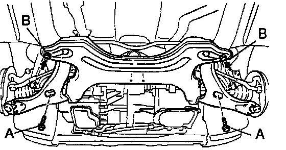 Remove the 4 bolts and disconnect the suspension member from the body.