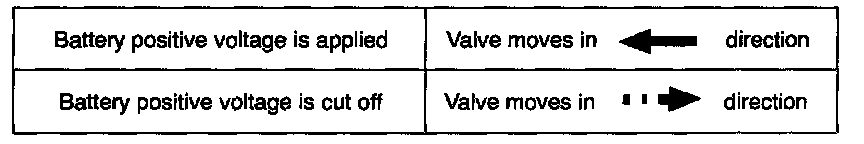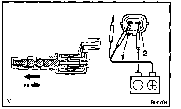 Connect the positive (+) lead from the battery to terminal 1 and negative (-) lead to terminal 2, and check the movement of the valve.