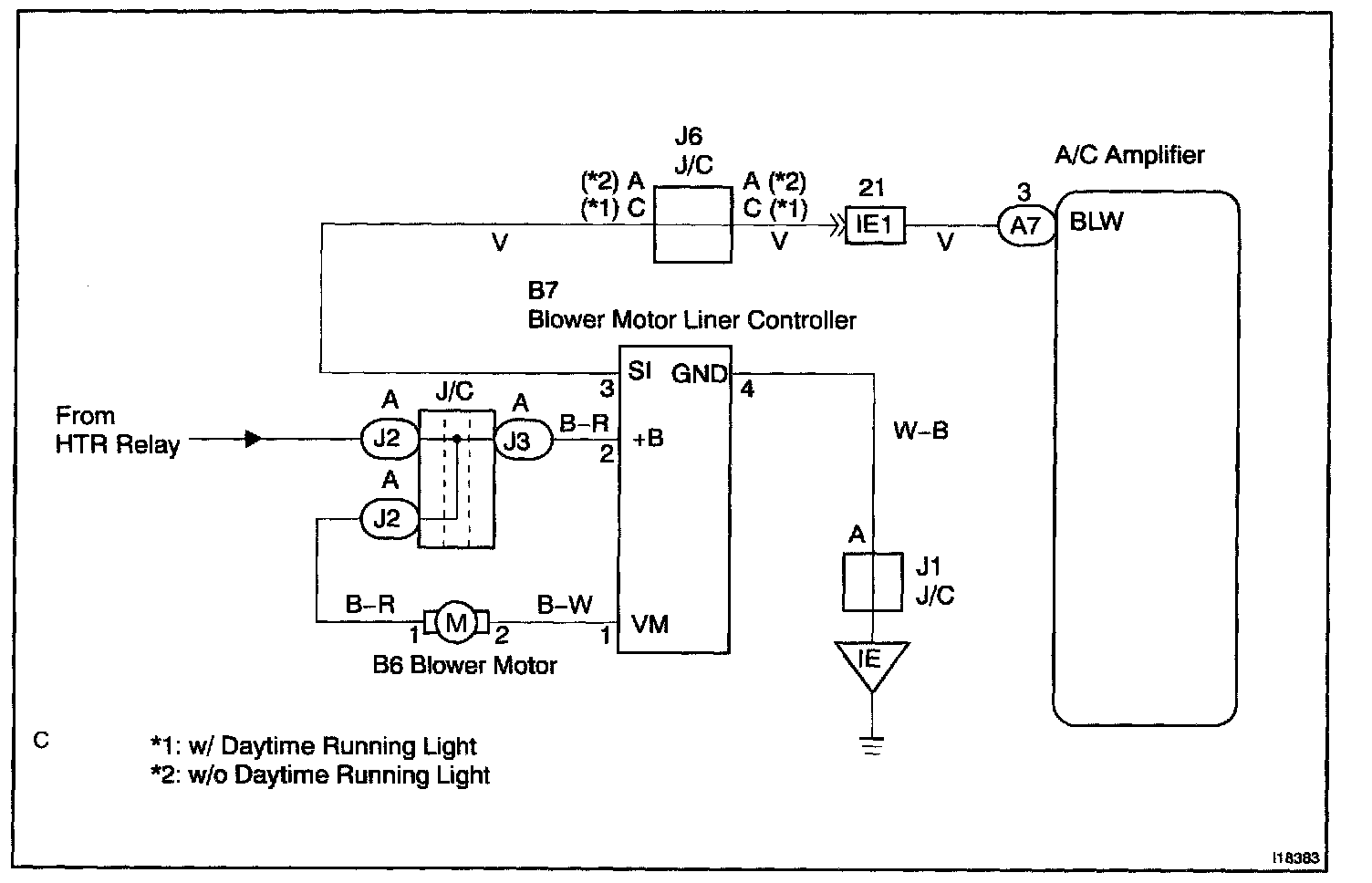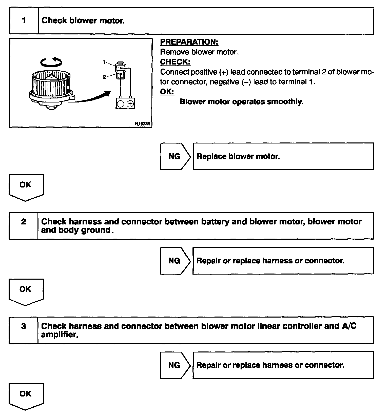 CIRCUIT DESCRIPTIONThe blower motor is operated by signals from the A/C amplifier.