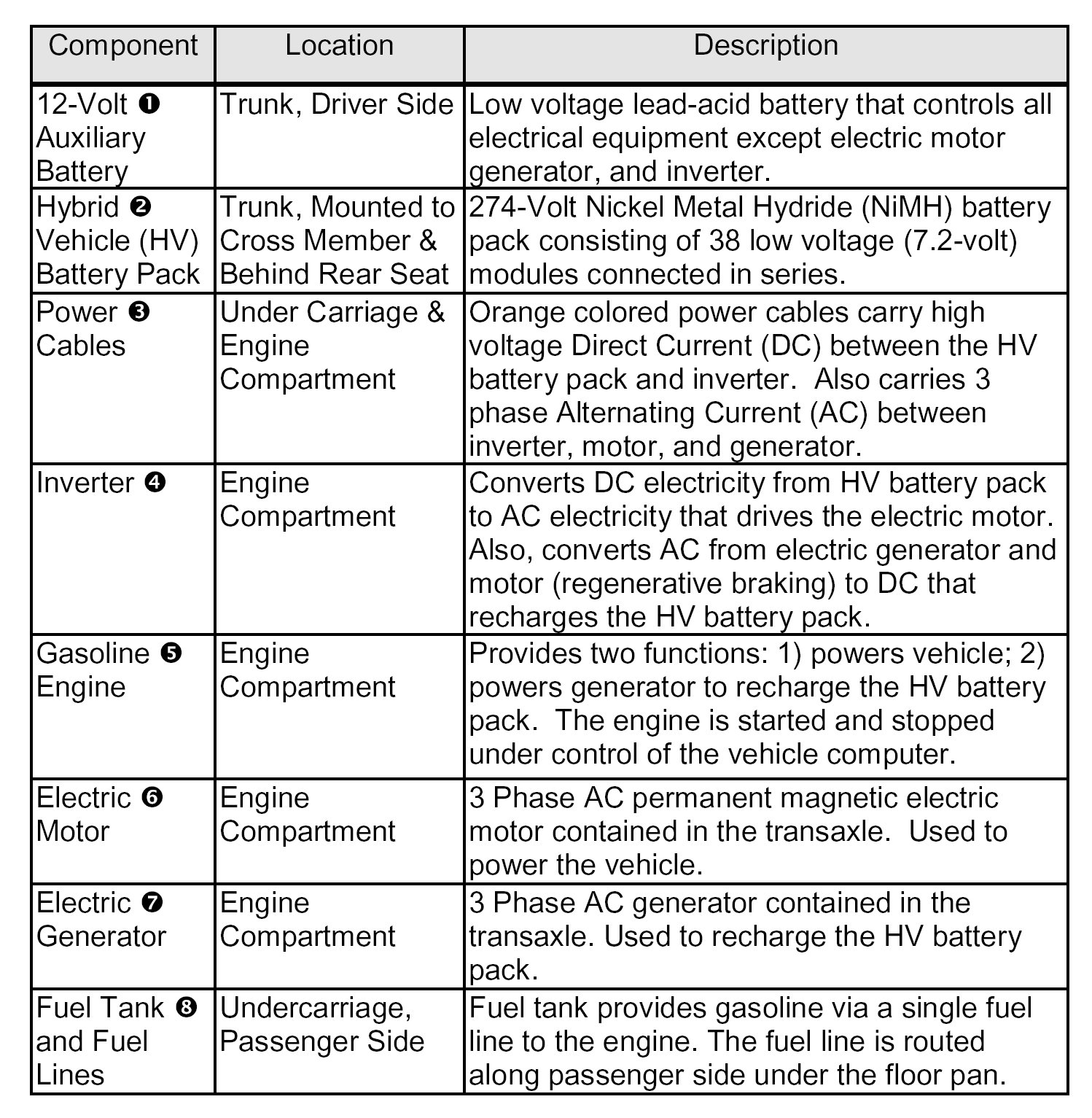 Hybrid Component Locations & Descriptions
