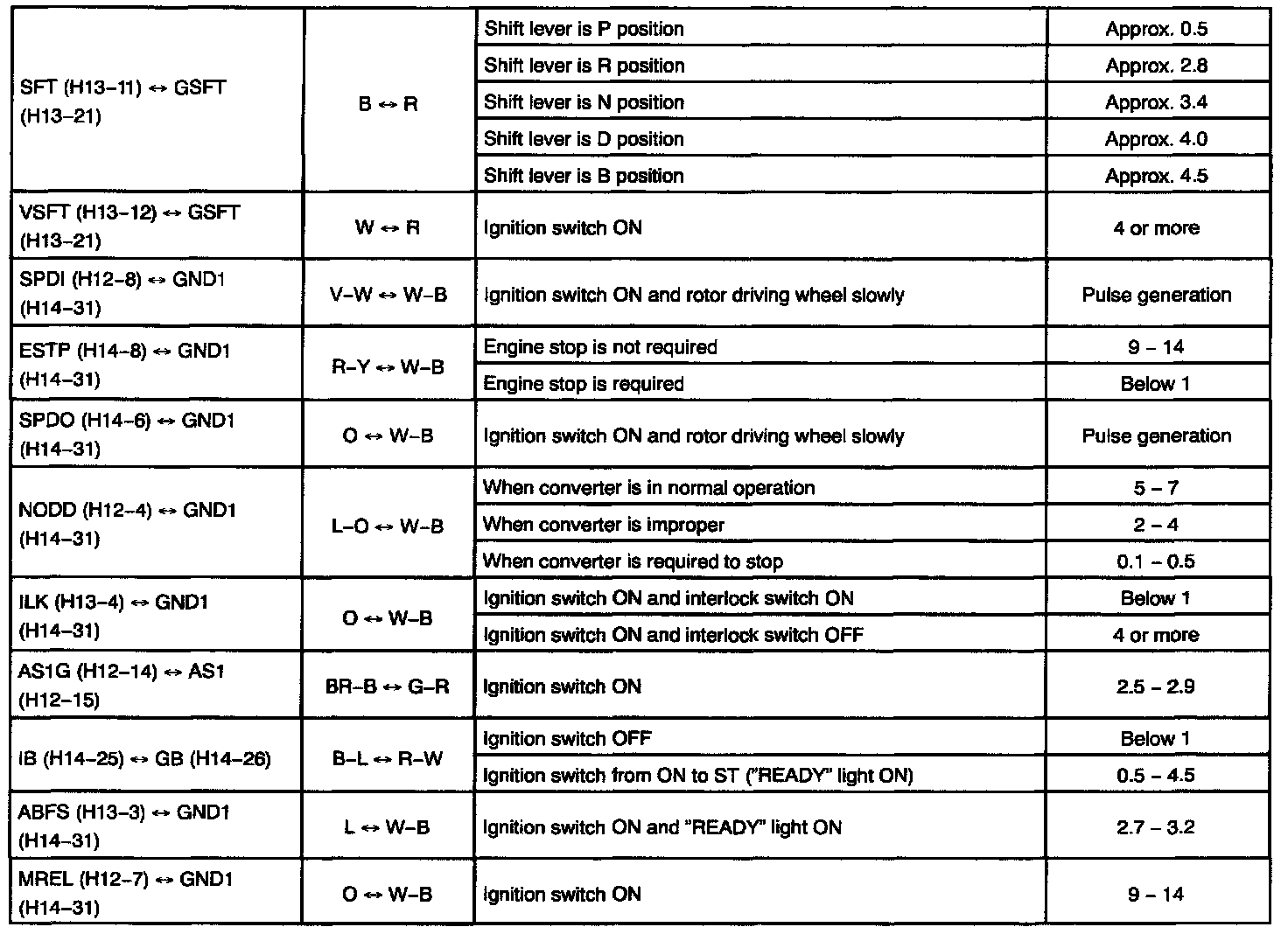 Pinout Values and Diagnostic Parameters