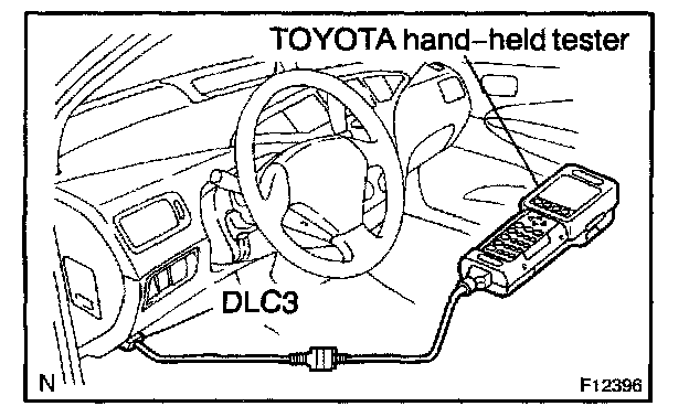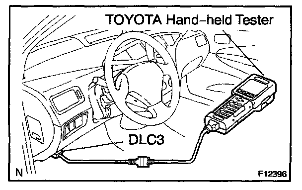 1. Connect the TOYOTA hand-held tester to the DLC3.
