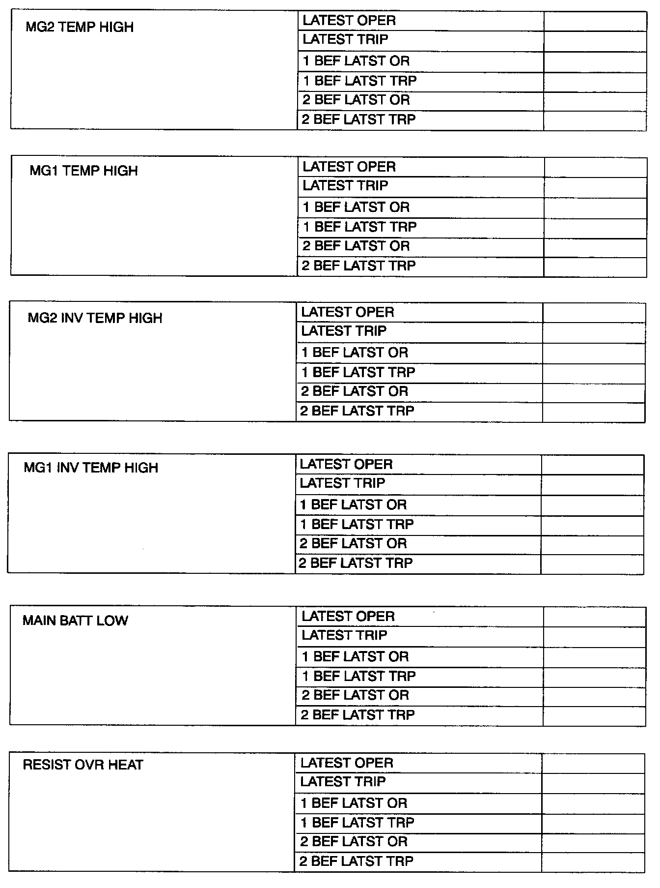- For one DTC, the HV diagnosis system can memorize more than one information code and freeze frame data corresponding to them. Therefore, when troubleshooting, check all of the information codes, record the freeze frame data and then start inspection according to the procedures of "Circuit Inspection".