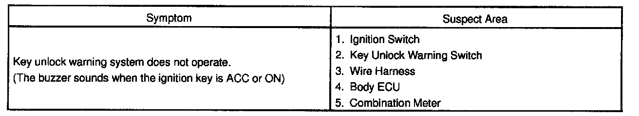 Problem Symptoms Table - Key Unlock Warning Switch: