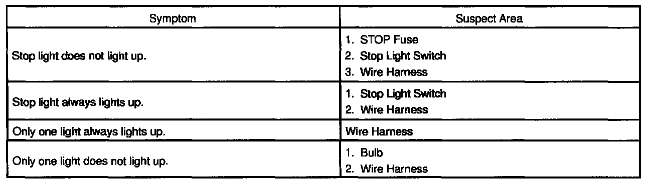 Problem Symptoms Table - Stop Light System: