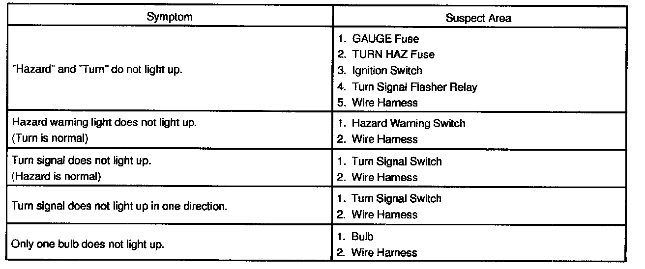 Problem Symptoms Table - Turn Signal And Hazard System: