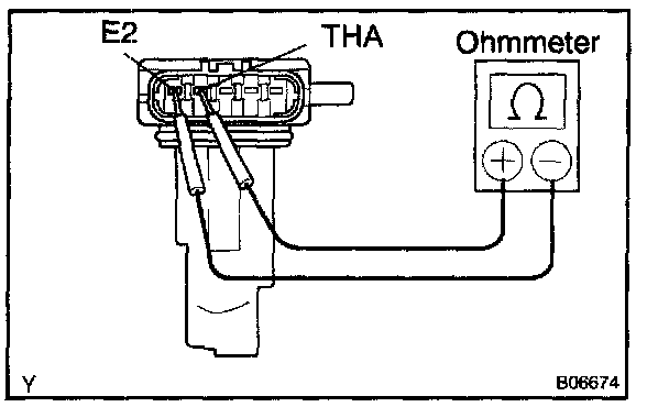 Using an ohmmeter, measure the resistance between terminals THA and E2.