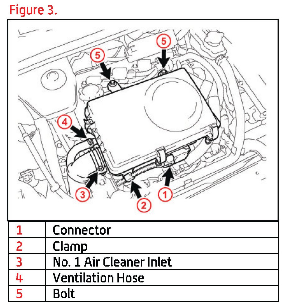 B. Disconnect the No. 1 air cleaner inlet and ventilation hose from the air cleaner assembly.