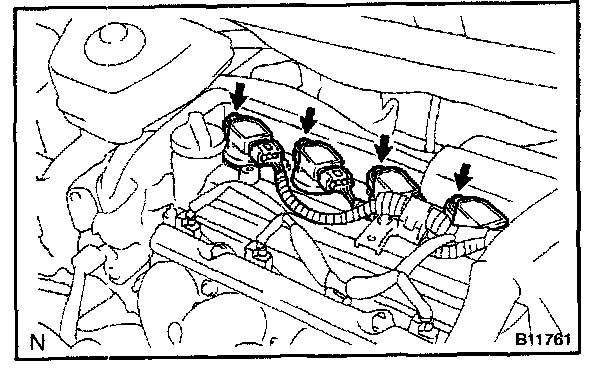 2. DISCONNECT 4 IGNITION COIL CONNECTORS