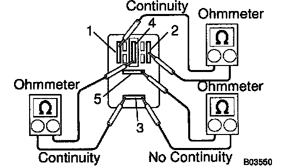 3. Using an ohmmeter, check that continuity exists between terminals 3 and 5.