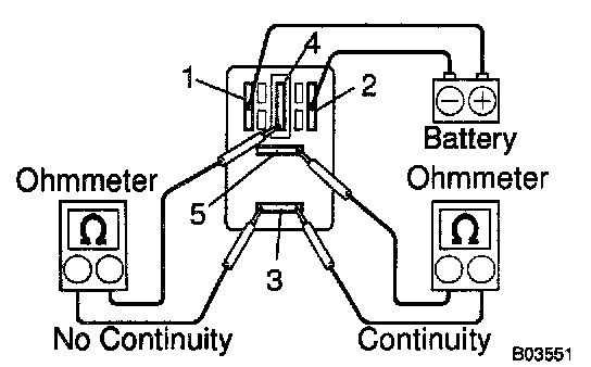 2. Using an ohmmeter, check that continuity exists between terminals 3 and 5.