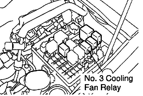 b. Remove the No. 3 cooling fan relay. (Marking: Fan NO. 3)