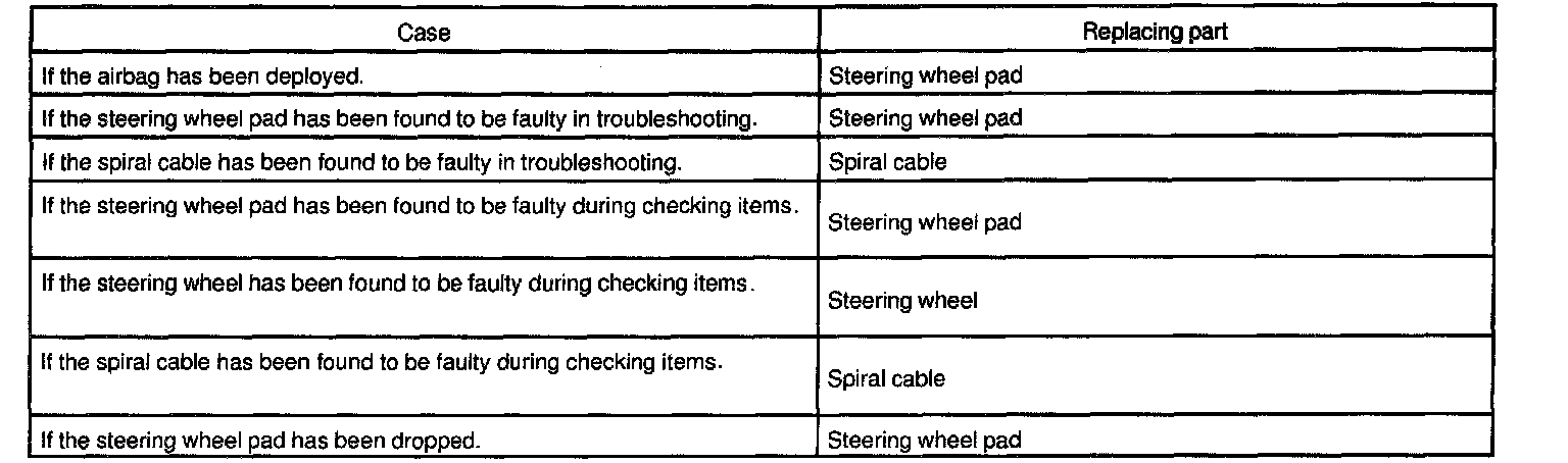 In the following cases, replace the steering wheel pad, steering wheel or spiral cable.