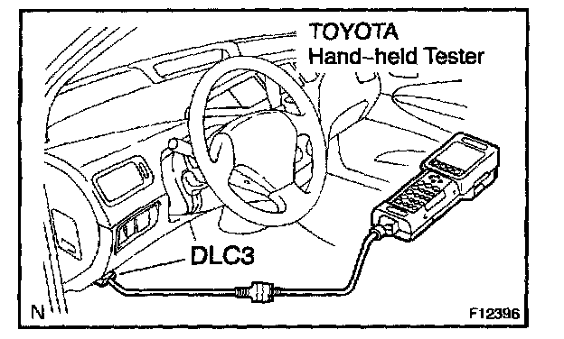 2. Hook up the TOYOTA hand-held tester to the DLC3.