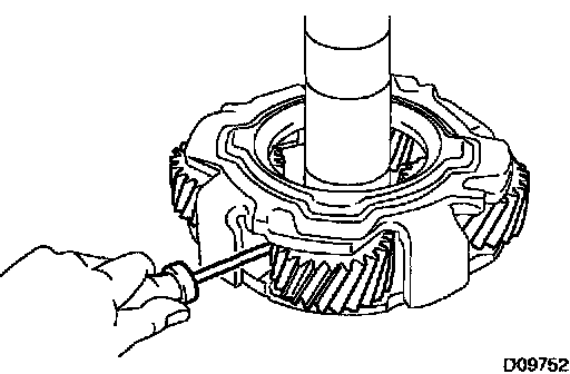Using a screwdriver, remove the needle roller bearing and 2 bearing races.