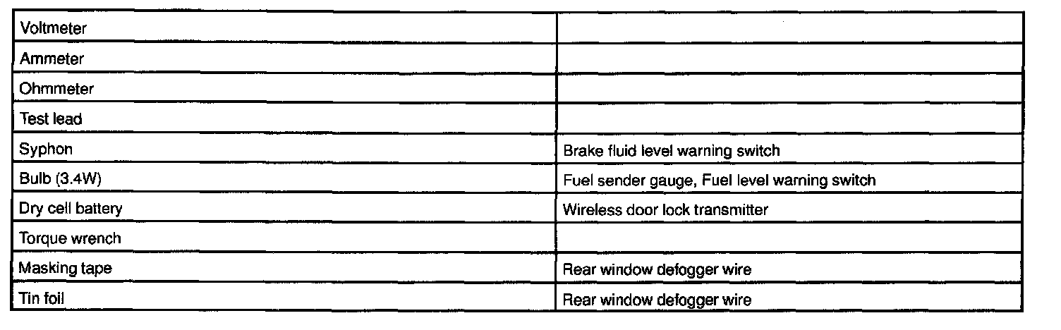 Body Electrical - Recommended Tools: