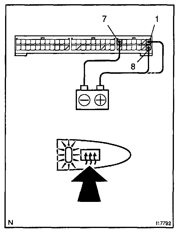 a. Connect the positive (+) lead from the battery to terminal 1, 8 and negative (-) lead to terminal 7.