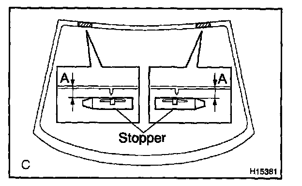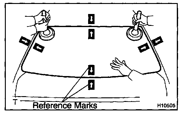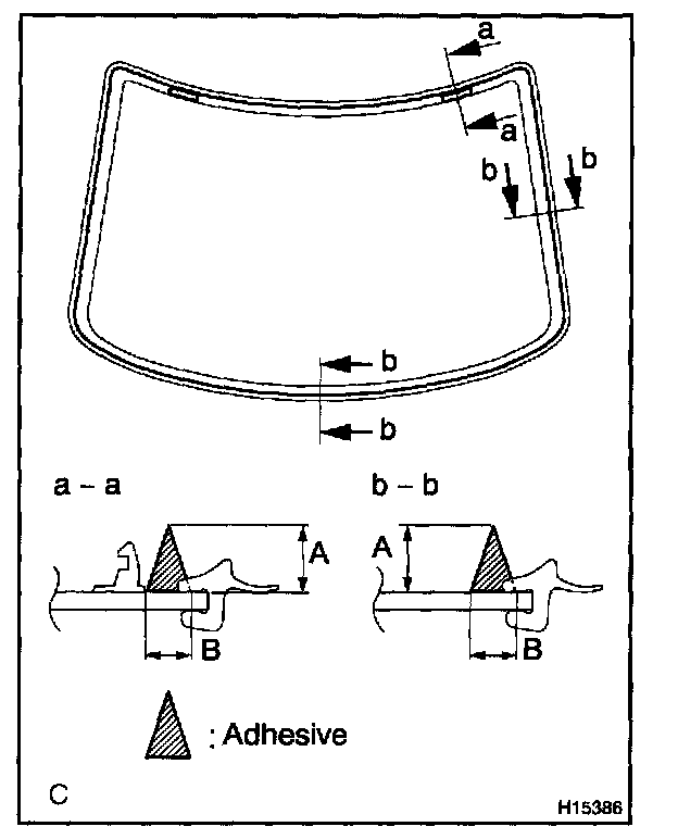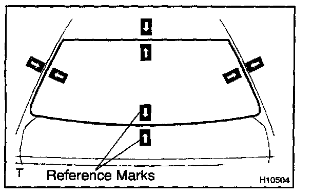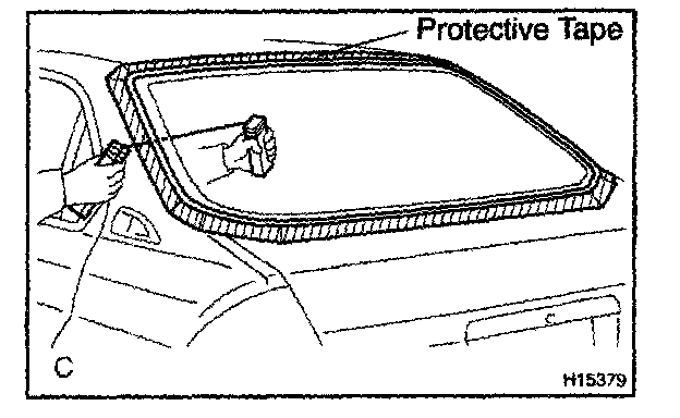 b. Hold the back window glass in place securely with a protective tape or equivalent until the adhesive hardens.