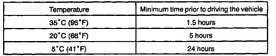 NOTE: Take care not to drive the vehicle during the time described in the table.