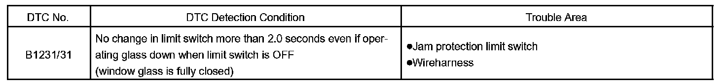 These DTCs are output when a malfunction of limit switch within power window motor is detected.
