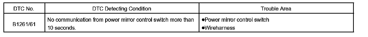 This DTC is output when communication stops between power mirror control switch and Body ECU.