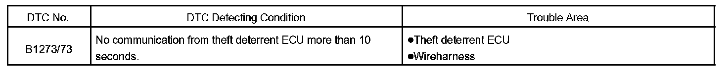This DTC is output when communication stops between theft deterrent ECU and body ECU.