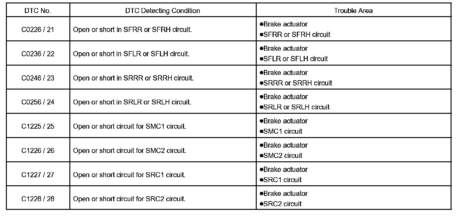 DTC C0236 Open or Short Circuit in Brake ActuatorCIRCUIT DESCRIPTION