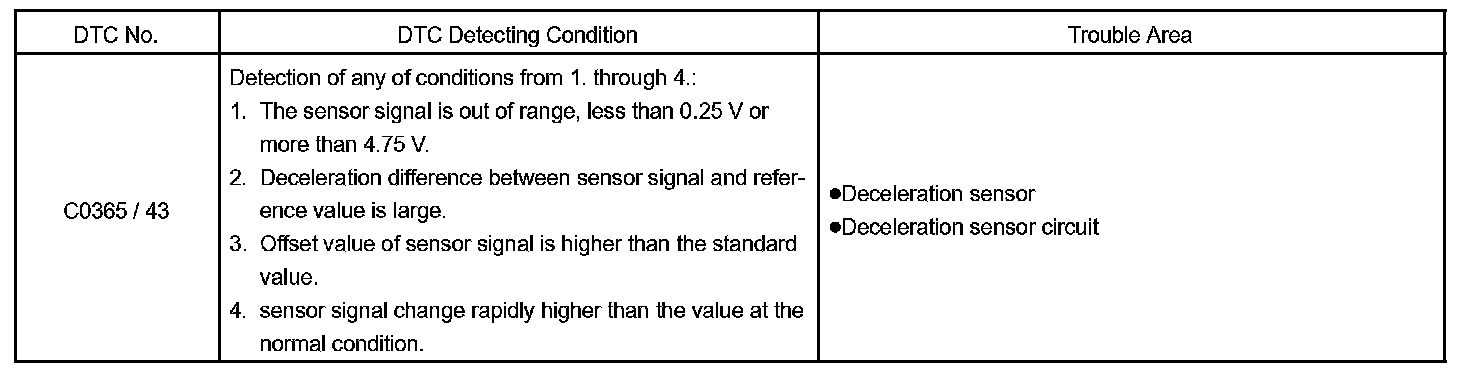 DTC C0365 Deceleration Sensor CircuitCIRCUIT DESCRIPTION
