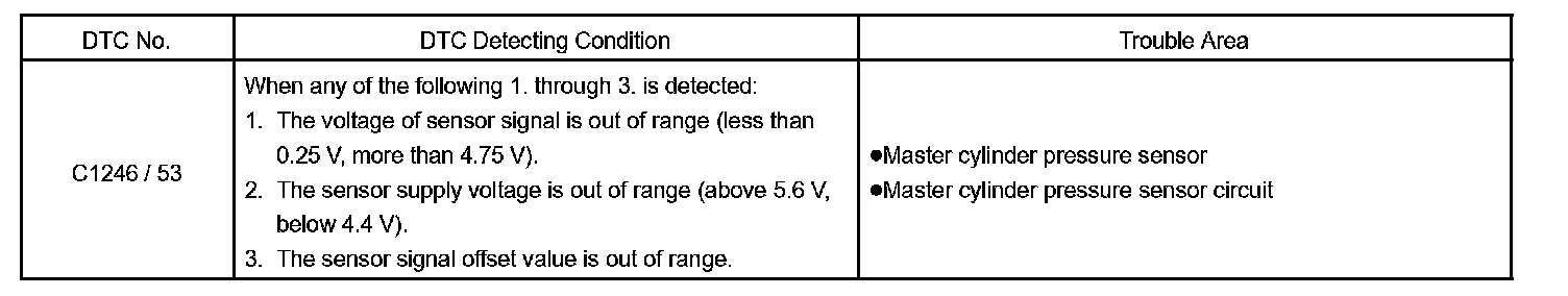 DTC C1246 Master Cylinder Pressure Sensor CircuitDTC Detecting Condition: