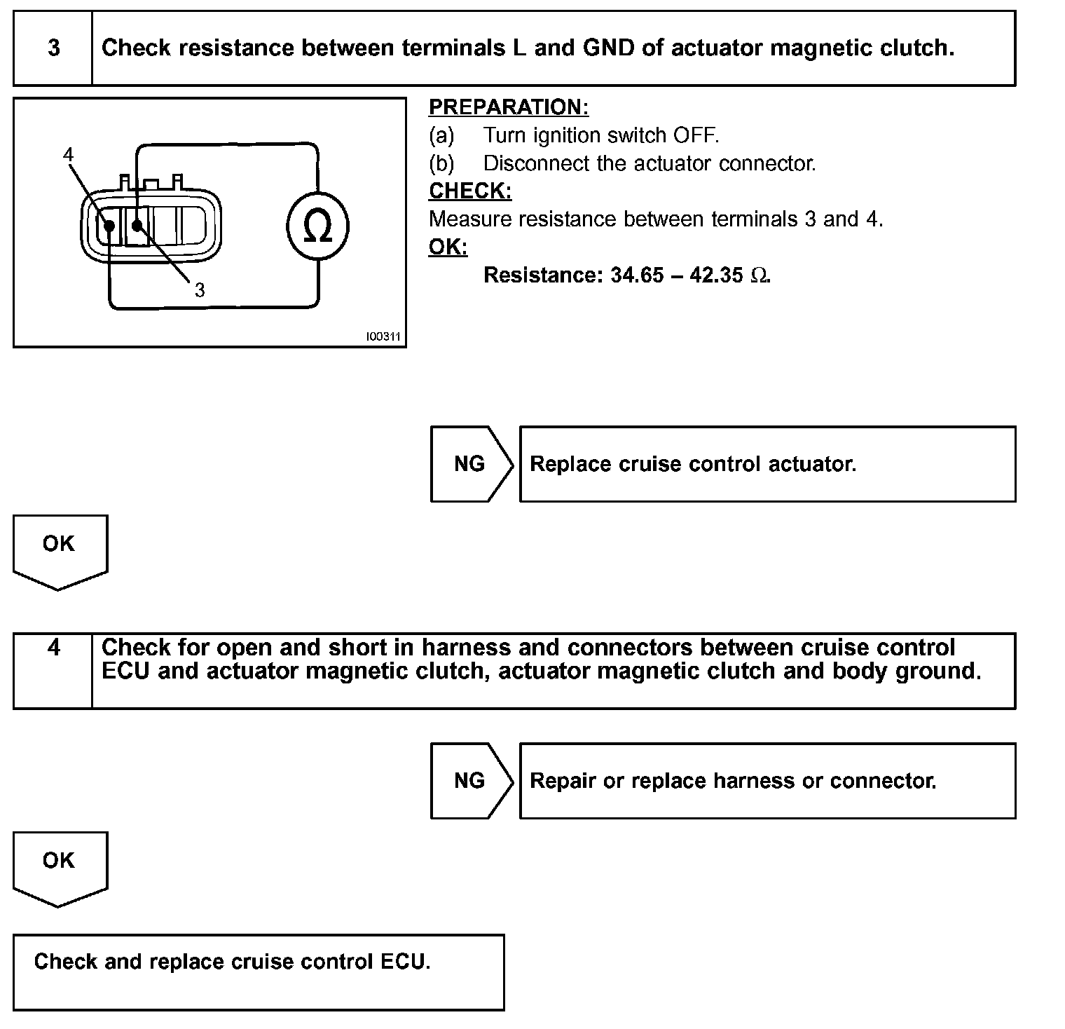 This circuit turns on the magnetic clutch inside the actuator during cruise control operation according to the signal from the ECU. If a malfunction occurs in the actuator or speed sensor, etc. during cruise control operation, the rotor shaft between the motor and control plate is released.