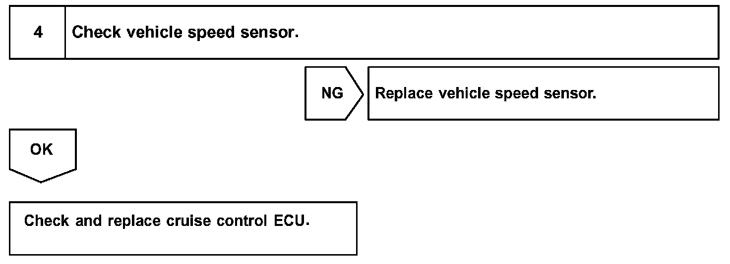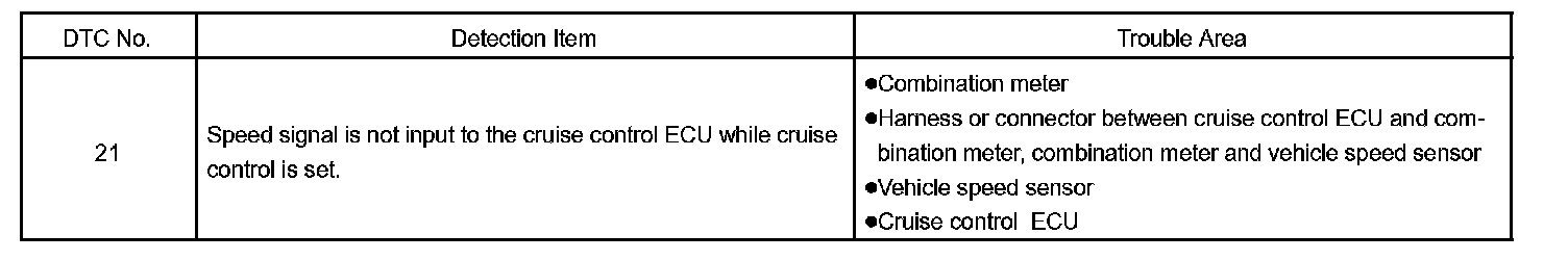 The signal from the vehicle speed sensor circuit is sent to cruise control ECU as vehicle speed signal.