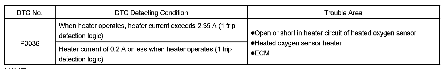DTC P0036 Oxygen Sensor Heater Control Circuit (Bank 1 Sensor 2)CIRCUIT DESCRIPTION