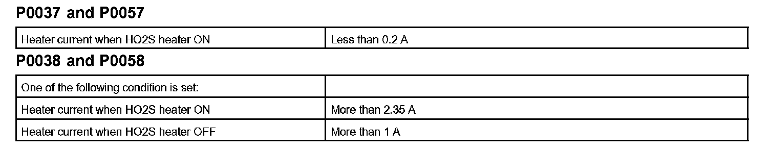 The ECM will set a high current DTC if the current in the sensor is more than 2.35 A when the heater is OFF. Similarly, the ECM will set a low current DTC if the current is less than 0.2 A when the heater is ON.