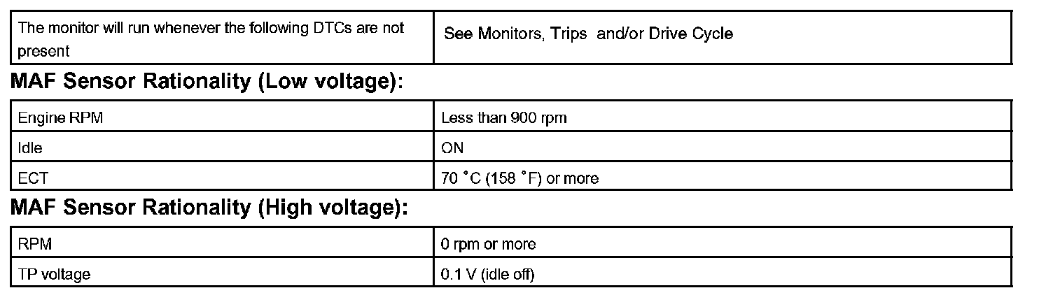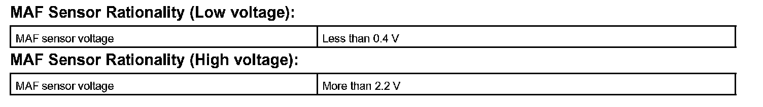 Example: If the voltage is more than 2.2 V at idle or less than 0.4 V at idle off, the ECM interprets this as a defect in the MAF meter and sets a DTC.