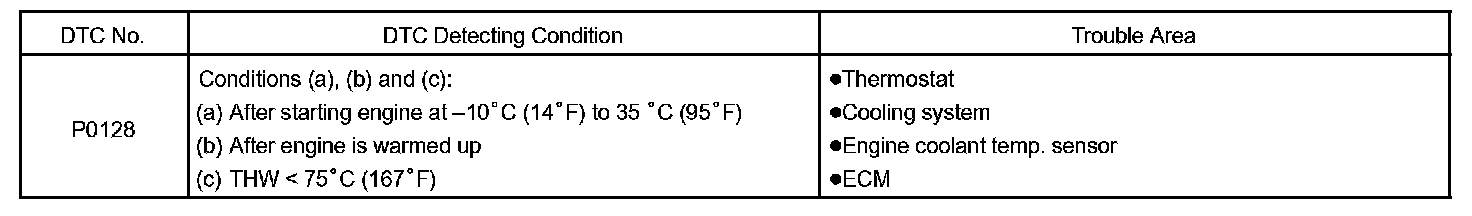DTC P0128 Coolant Thermostat (Coolant Temperature Below Thermostat Regulating Temperature)CIRCUIT DESCRIPTION