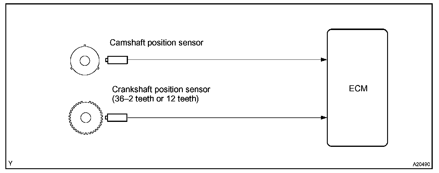 When a misfire occurs in the engine, hydrocarbons (HC) enter the exhaust in high concentrations. If this HC concentration is high enough, there could be an increase in exhaust emissions levels. High concentrations of HC can also cause to temperature of the catalyst to increase, possibly damaging the catalyst. To prevent increases in emissions and limit the possibility of thermal damage, the ECM monitors the misfire rate. When the temperature of the catalyst reaches a point of thermal degradation, the ECM will blink the MIL. For monitoring a misfire, the ECM uses both the camshaft position sensor and the crankshaft position sensor. The camshaft position sensor is used to identify misfiring cylinders and the crankshaft position sensor is used to measure variations in the crankshaft rotation speed. The misfire is counted when crankshaft rotation speed variations exceed threshold values.