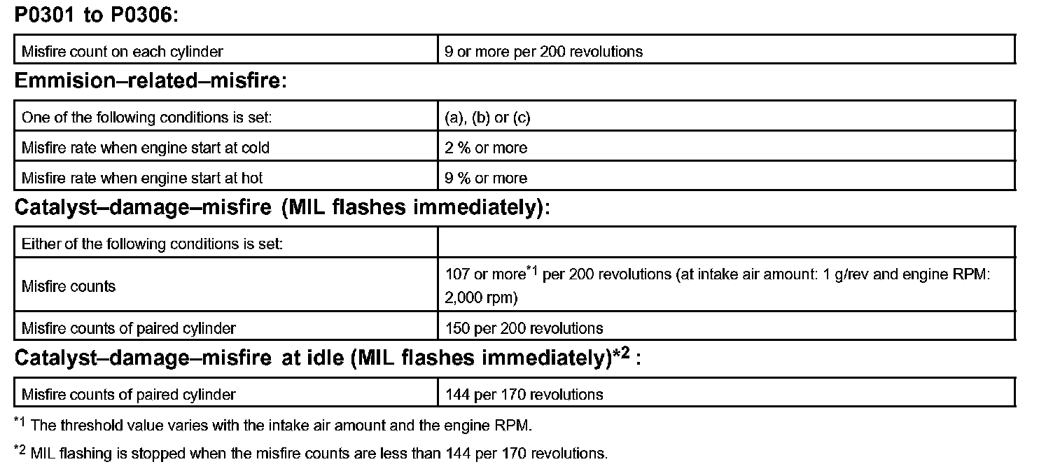 - During the first 1,000 engine revolutions after the engine starts, an excessive misfire rate (approximately 20 to 50 misfire per 1,000 engine revolutions) occurs 1 time.