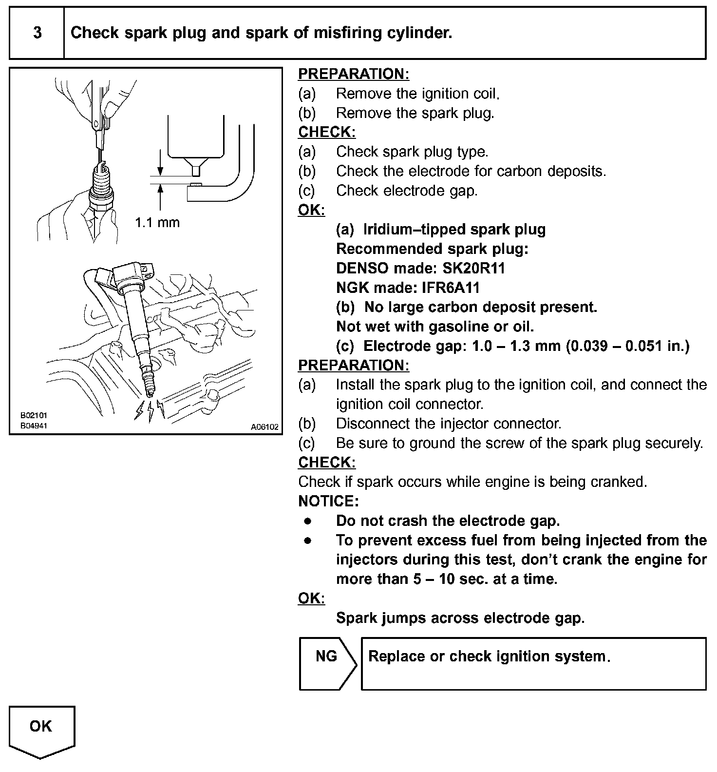 - In the case that misfire cannot be reproduced, the reason may be because of the driving with lack or fuel, the use of improper fuel, a stain of ignition plug, and etc.