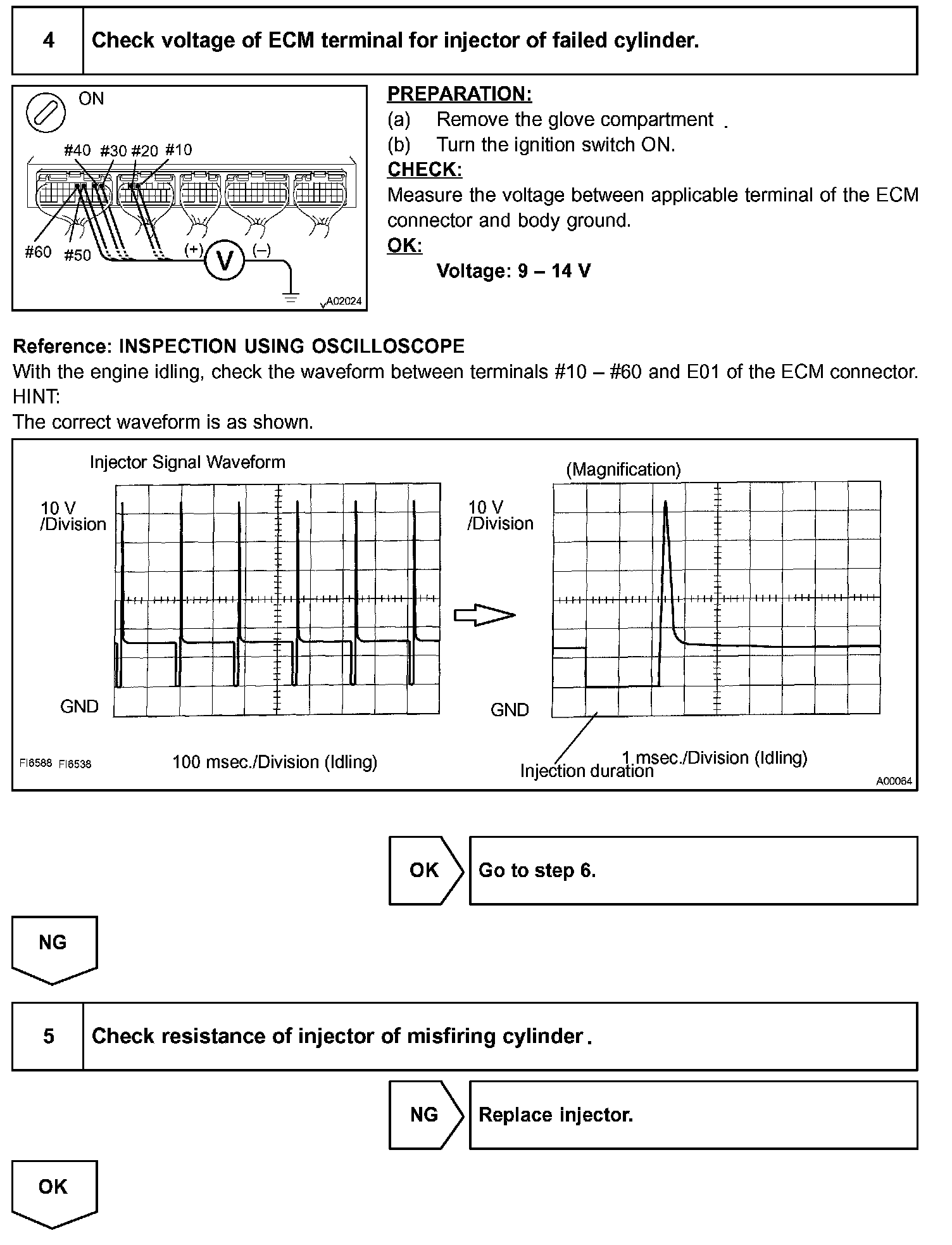 - If is case that DTC besides misfire is memorized simultaneously, first perform the troubleshooting for them.