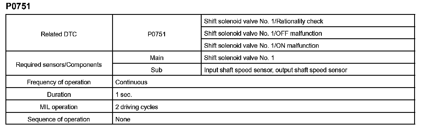DTC P0751 Shift Solenoid "A" Performance (Shift Solenoid Valve S1)SYSTEM DESCRIPTION