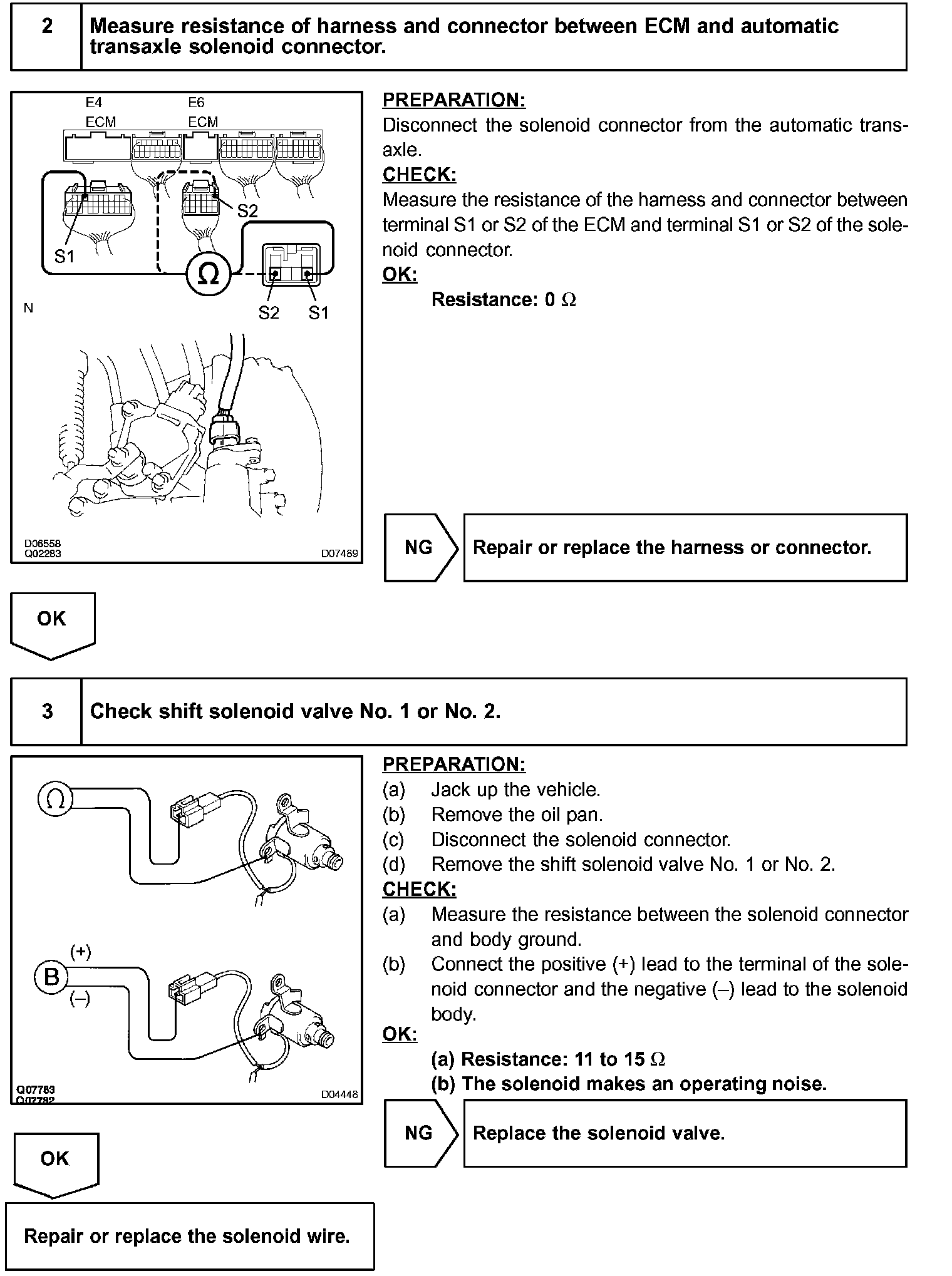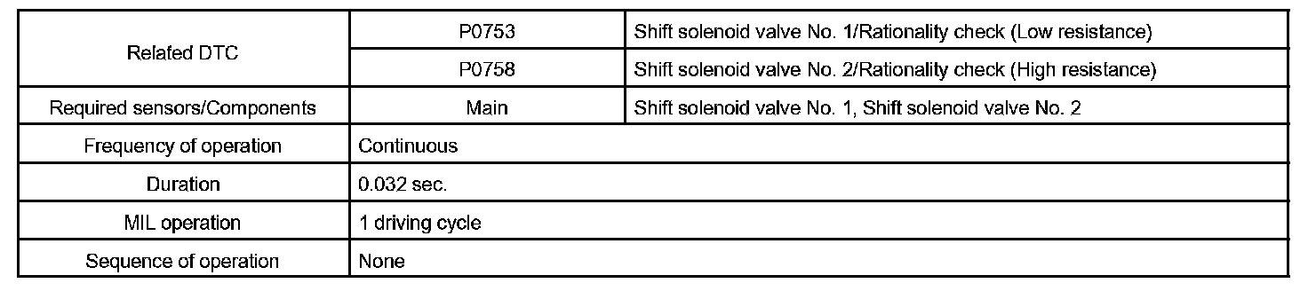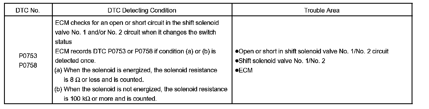 HINT: Check the shift solenoid valve No. 1 when DTC P0753 is output and check the shift solenoid valve No. 2when DTC P0758 is output.