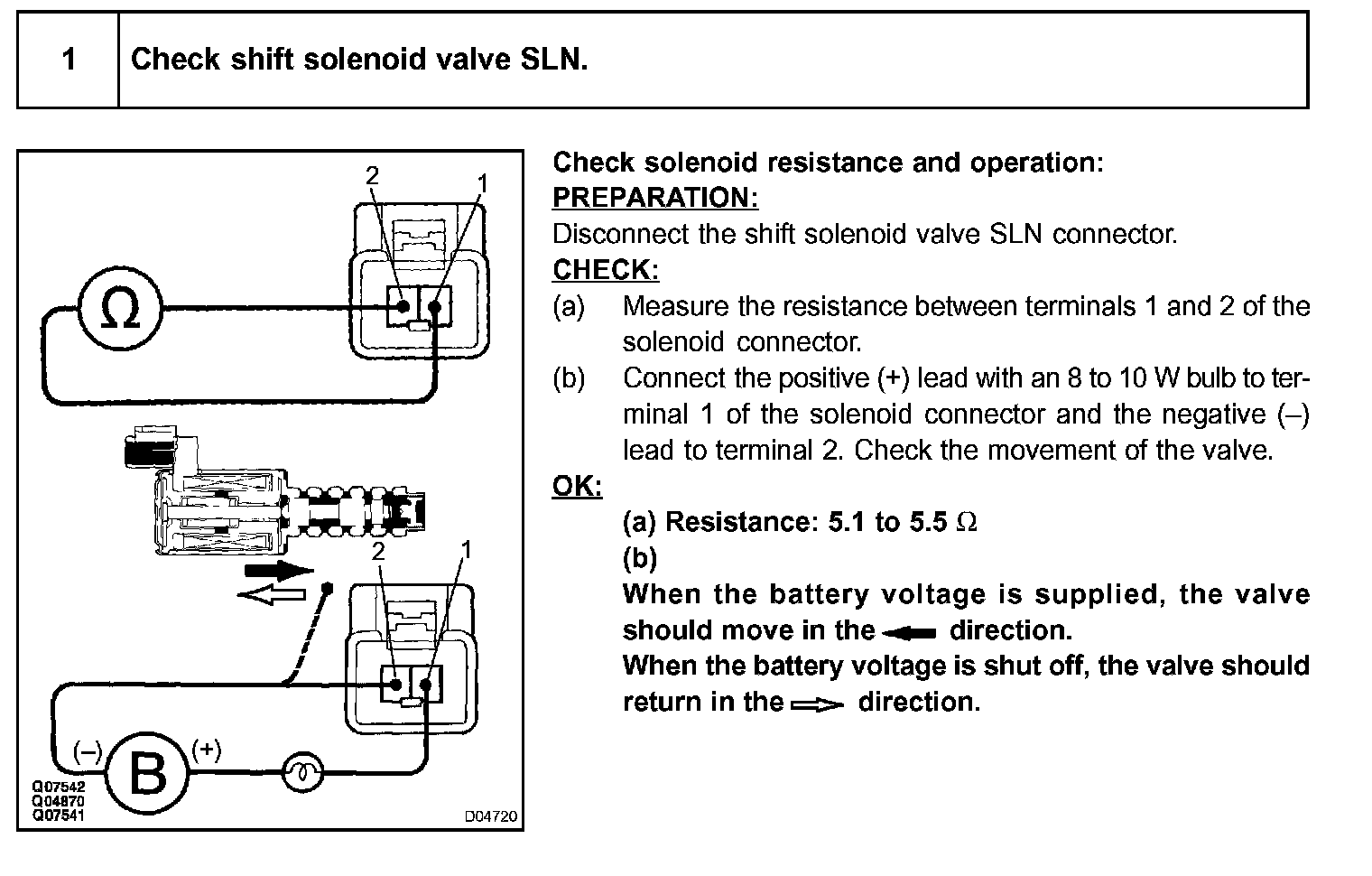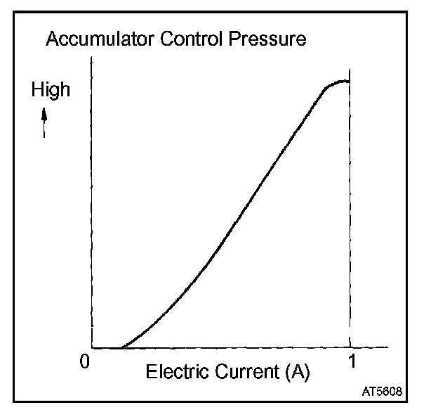 The shift solenoid valve SLN controls the oil pressure to the accumulator control valve to reduce transmission gearshift shock.