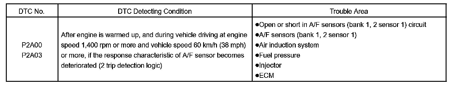 DTC P2A03 A/F Sensor Circuit Slow Response (Bank 2 Sensor 1)CIRCUIT DESCRIPTION