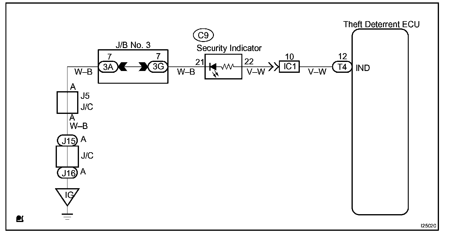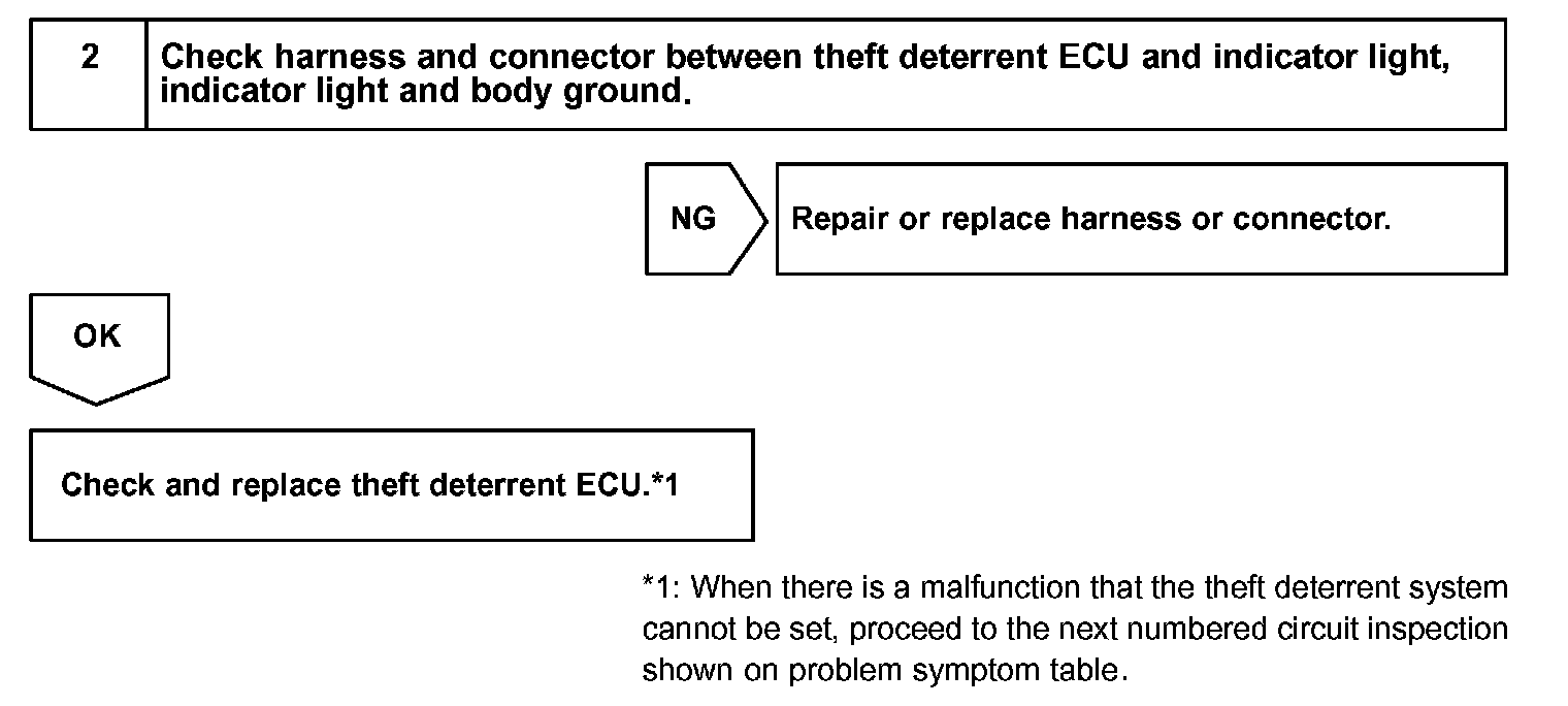 CIRCUIT DESCRIPTIONWhen the theft deterrent system is preparing to set, this circuit lights up the indicator light. When the system has been set, it continuously turns the indicator light on for 0.75 secs. and turns it off for 1.25 secs., thus blinking the indicator light.