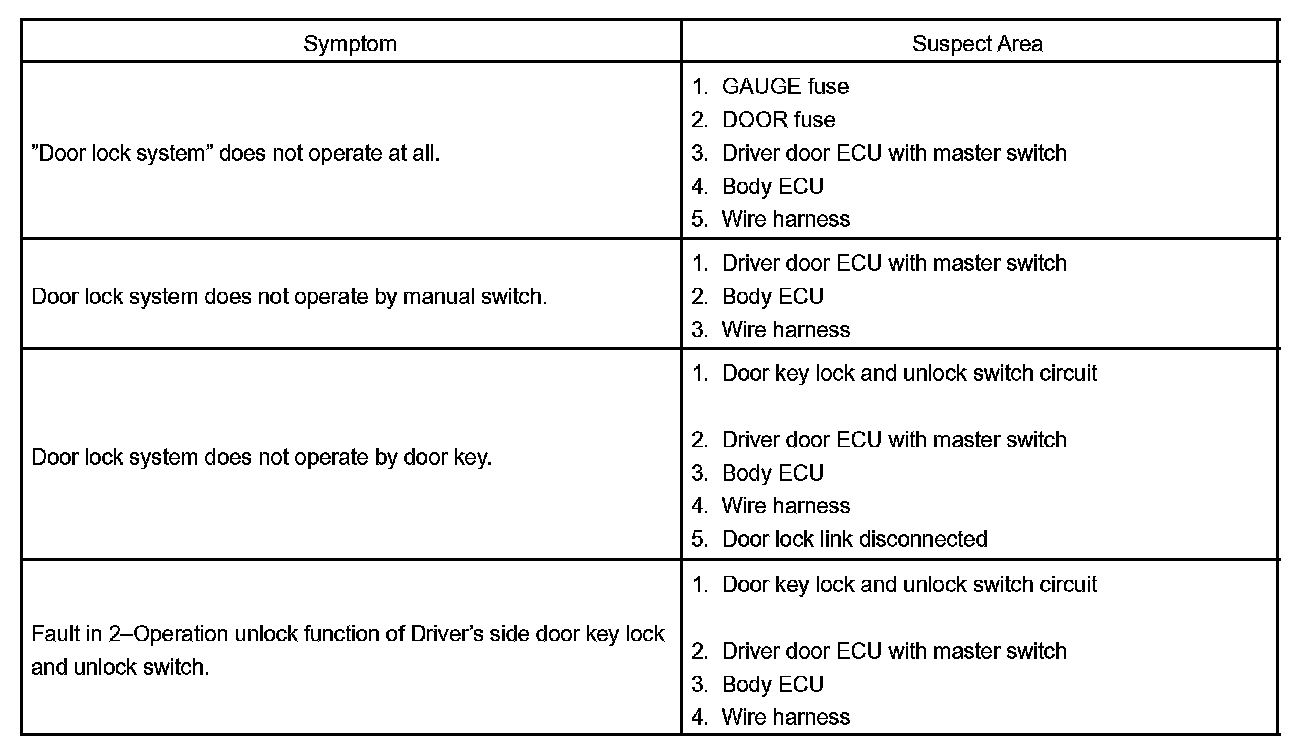Problem Symptom Table - Power Door Lock Control System Part 2: