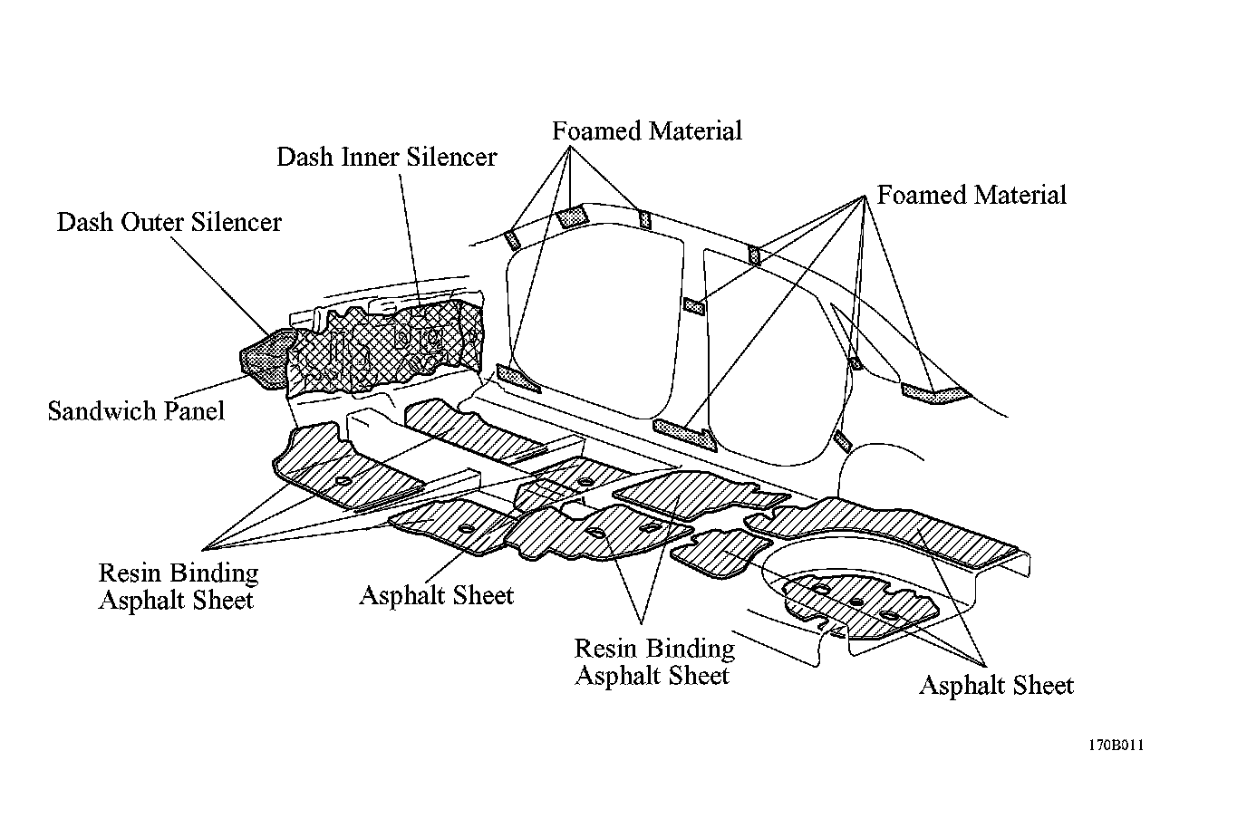 ^ Sandwich panels is used in the dash panel. Resin binding asphalt sheet and lightweight asphalt sheet are optimally allocated to reduce engine and road noise for quiter vehicle operation.