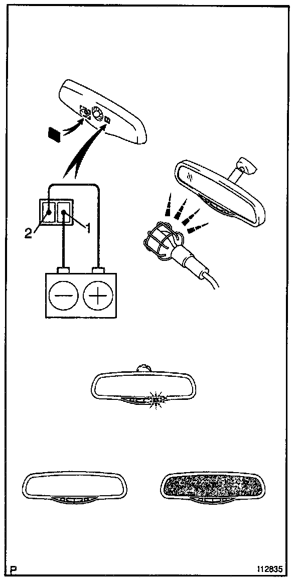 b. Shine an electric light on the mirror, and check that there is battery positive voltage and mirror surface becomes "bright" to "dark".