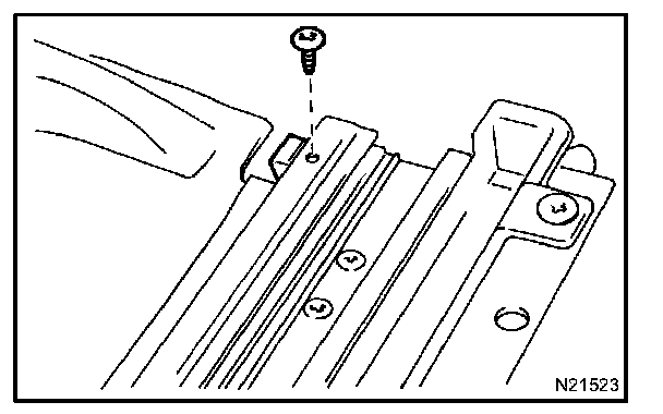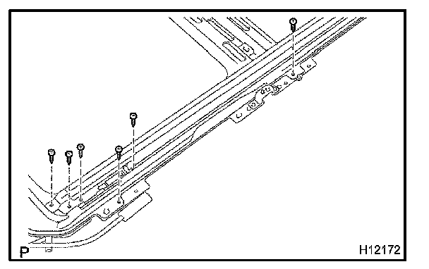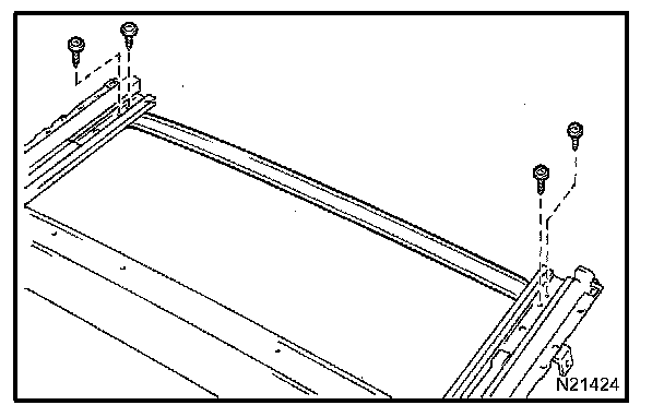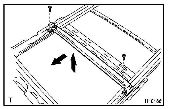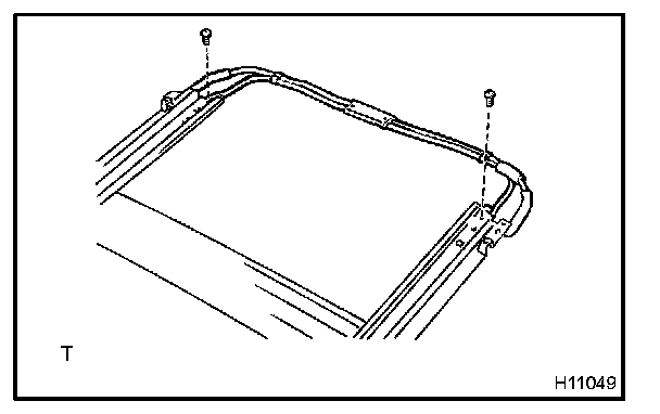 Remove the 2 screws and rear roof drip channel as shown in the illustration.