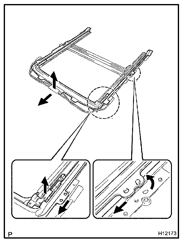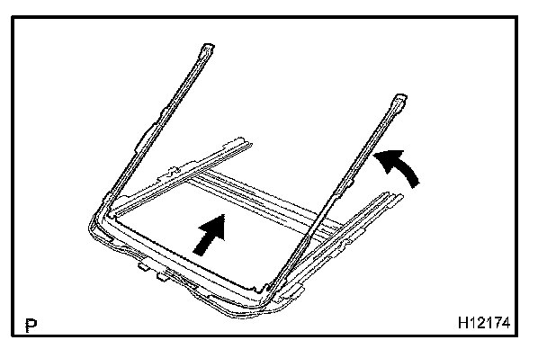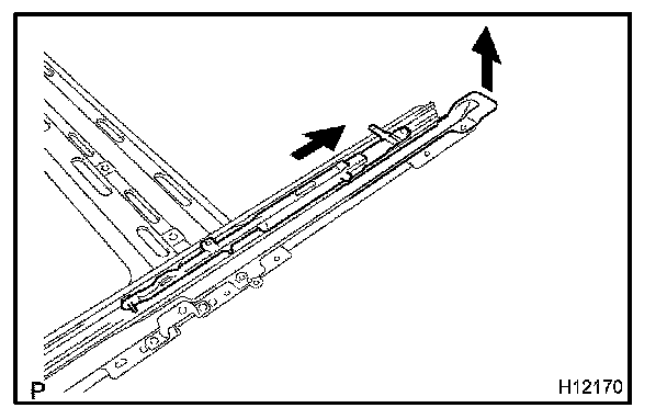d. Disconnect the sliding roof housing from the drive rail, and slide the sliding roof housing forward.